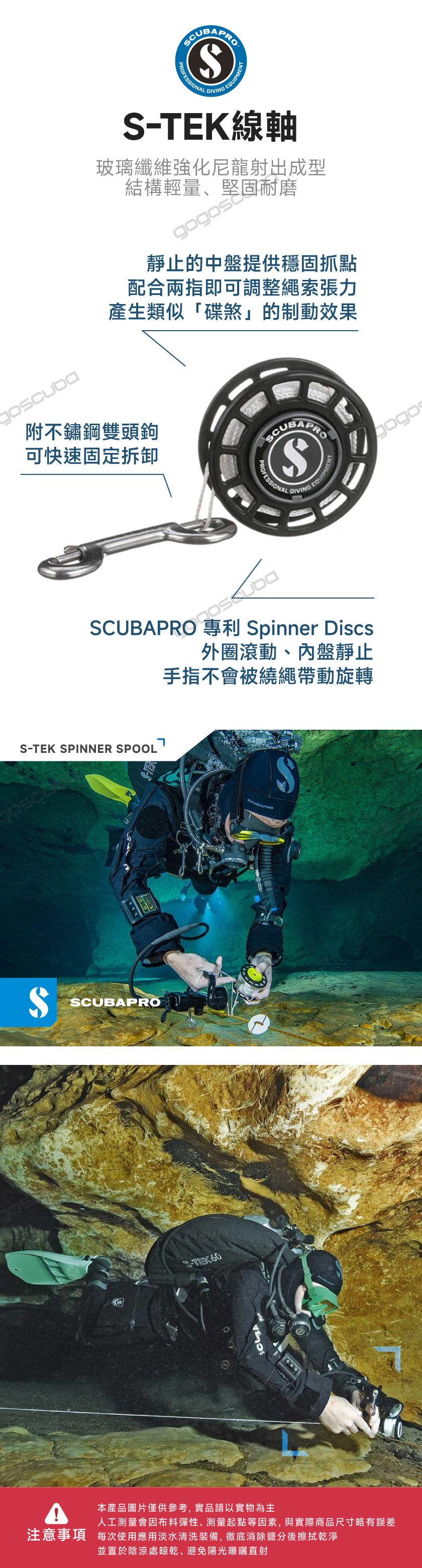 這款頂級的S-TEK線軸設計理念是從SCUBAPRO經典二級頭G250的獨特設計為靈感,提供三種線長選擇,操作簡單。