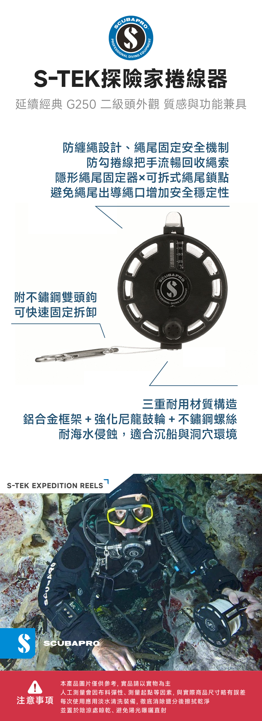 當專業的技術潛水員需要一個"正港的"線軸時,SCUBAPRO的S-TEK探險家捲線器無疑是上上之選。
