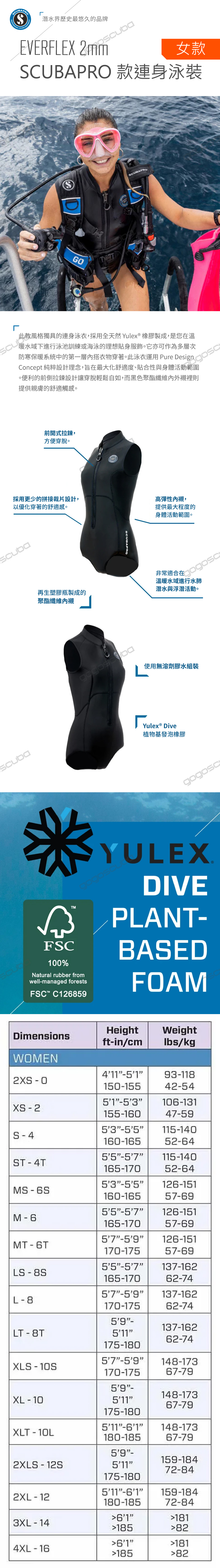 • SCUBAPRO 精心挑選的 Yulex-Dive 等級發泡橡膠,具備卓越的抗水壓特性,確保在各種深度下皆能長年可靠使用。