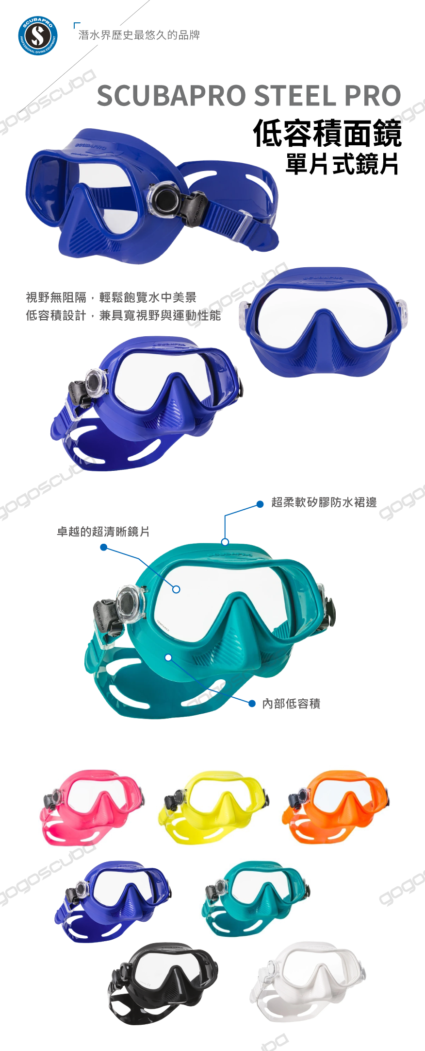 低容積面鏡,適合自由潛水員和水肺潛水員。