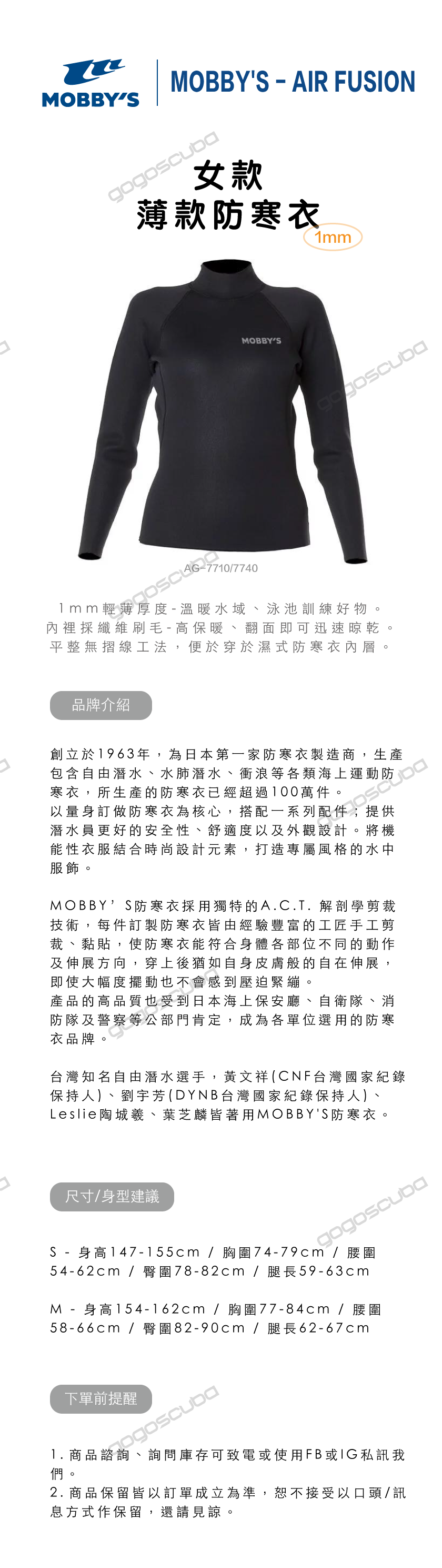 台灣知名自由潛水選手,黃文祥(CNF台灣國家紀錄保持人)、劉宇芳(DYNB台灣國家紀錄保持人)、Leslie陶城羲、葉芝麟皆著用MOBBY'S防寒衣。