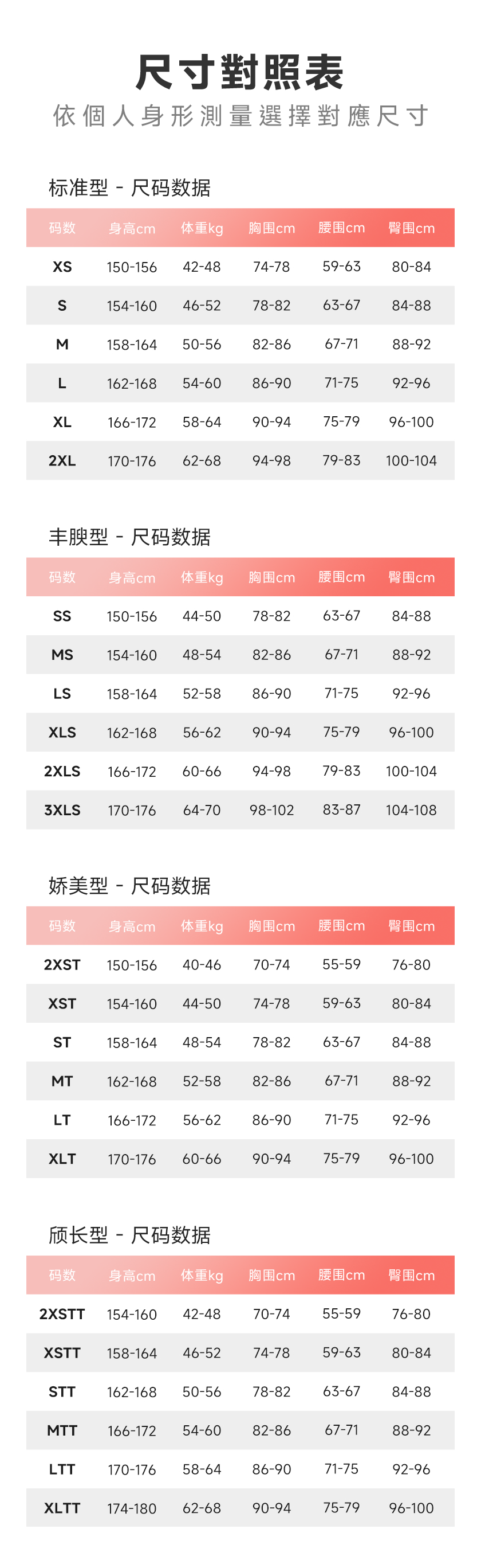 如需了解尺寸選擇,可至門市試穿,或者諮詢我們(提供身高、體重、三圍(cm)與肩寬),但尺寸建議僅供參考,不作為退換貨依據,望買家諒解。