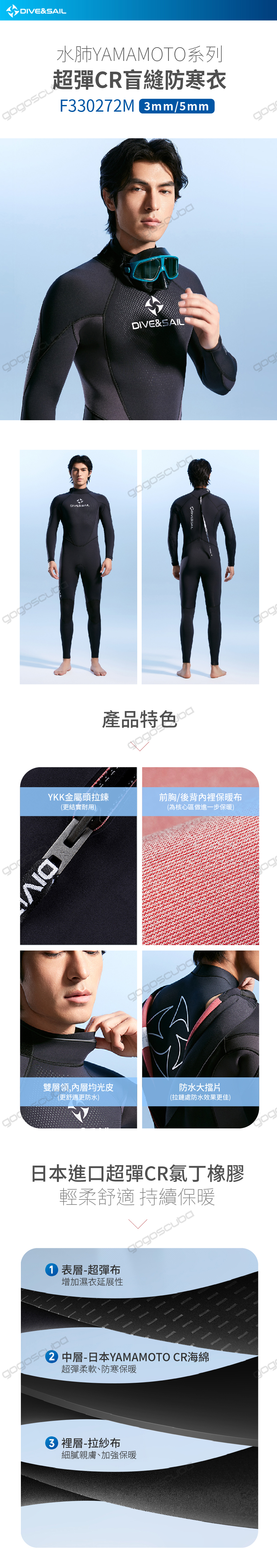 ※ 尺寸選擇請依尺寸表範圍選,連身款版型較窄,勿刻意選小尺寸。若是新手或不喜歡防寒衣太貼身的潛水員,可以考慮往上多加半碼至一碼尺寸。胸部較大的女性,可考慮挑大半碼,而上身比例較長者,可考慮挑長半碼尺寸。