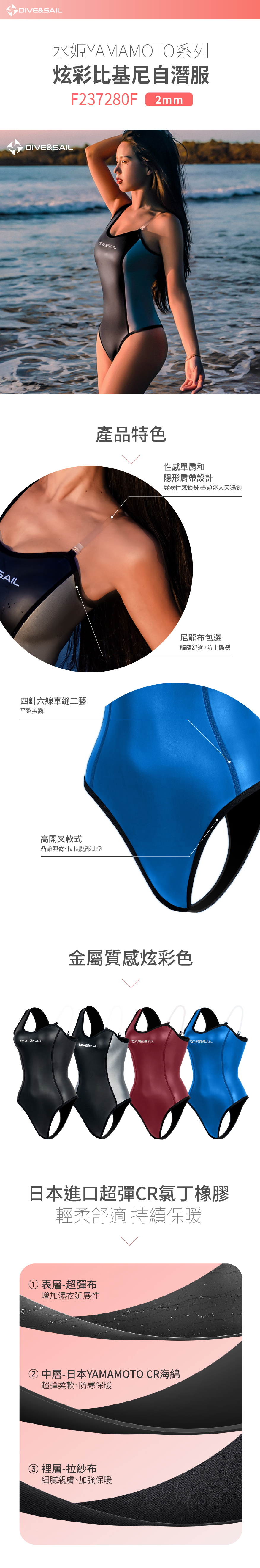 ※ 尺寸選擇請依尺寸表範圍選,連身款版型較窄,勿刻意選小尺寸。若是新手或不喜歡防寒衣太貼身的潛水員,可以考慮往上多加半碼至一碼尺寸。胸部較大的女性,可考慮挑大半碼,而上身比例較長者,可考慮挑長半碼尺寸。