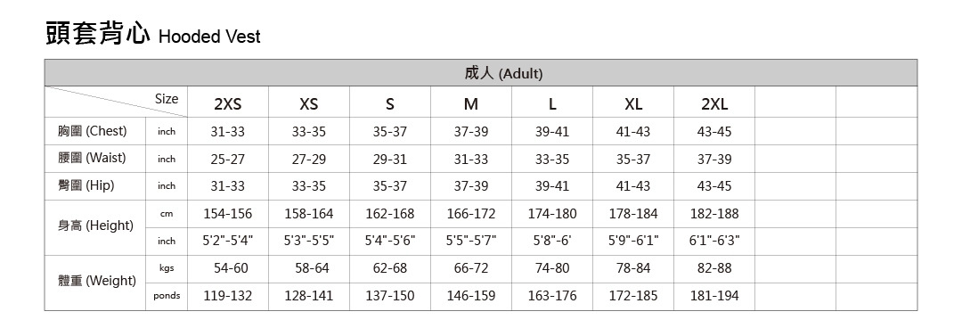 尺寸:XS, S, M, L, XL, XXL